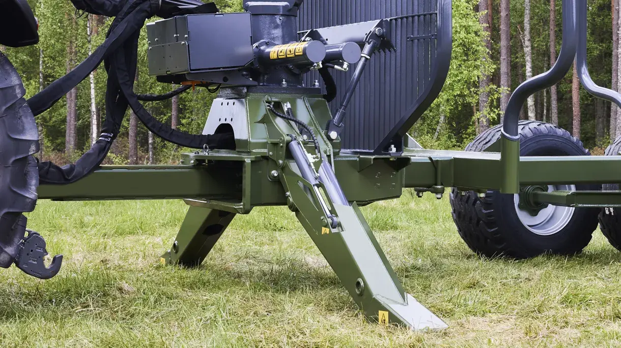 This new generation of forestry trailers DS can be equipped with two different crane podiums depending on the crane size and user needs. The crane podium is now positioned low for good visibility from inside the tractor.