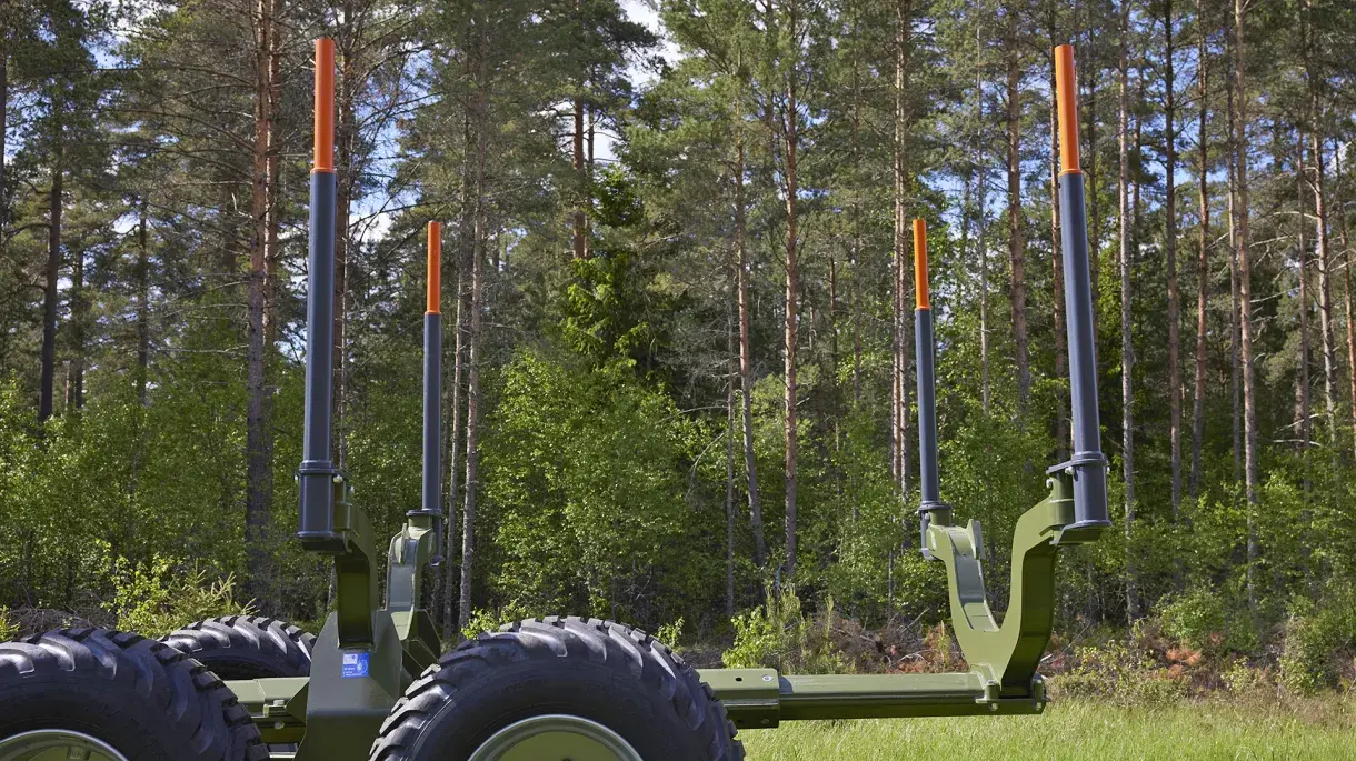 This G2 modell is fitted in standard with a hydraulically extendable bank at the rear of the trailer which enables the trailer to be extended by 675 mm. The bank facilitates when hauling extra long timber lengths or random lengths of pulpwood.