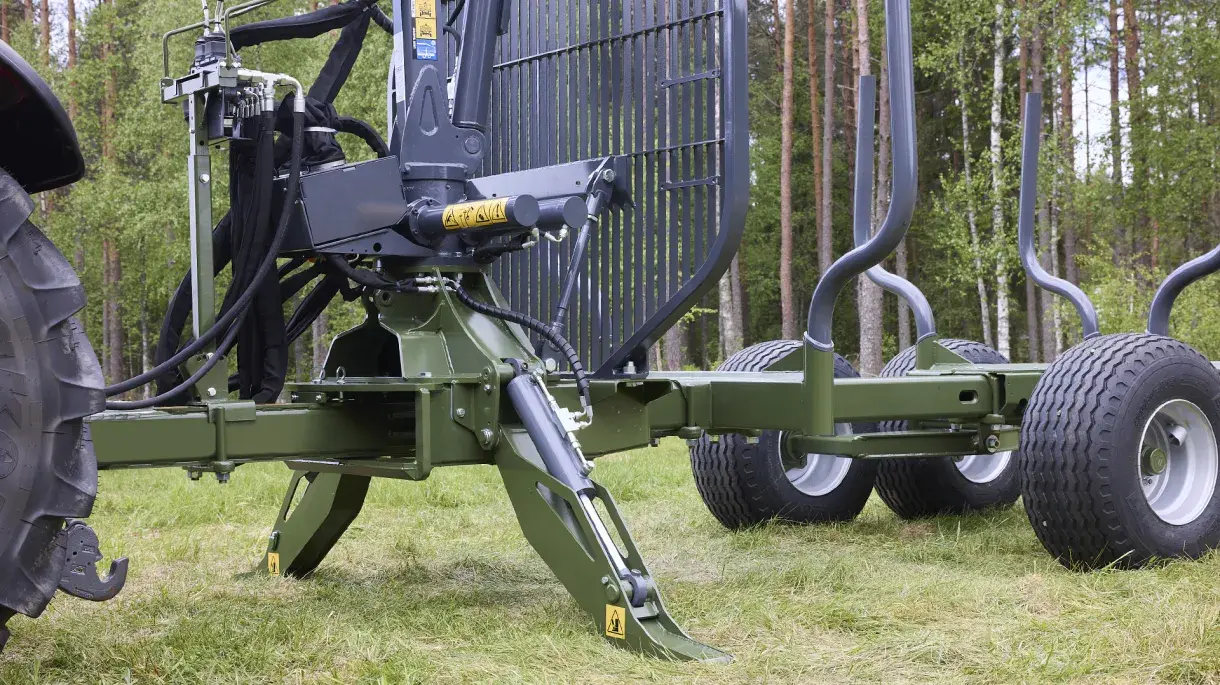 This new generation of forestry trailers DS can be equipped with two different crane podiums depending on the crane size and user needs. The crane podium is now positioned low for good visibility from inside the tractor.